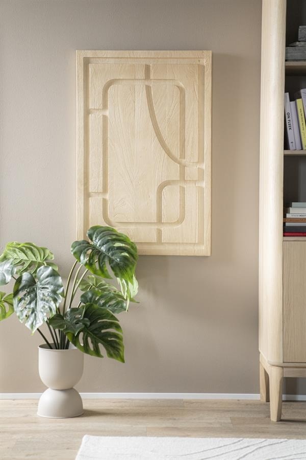 Voeg een vleugje elegantie toe aan uw interieur met het Wandpaneel Kuzai in een tijdloze lichtbruine kleur. Dit prachtige stuk muurdecoratie, aangeboden door het trendy merk By Boo, is de perfecte aanvulling op elke moderne of industriële woonstijl.