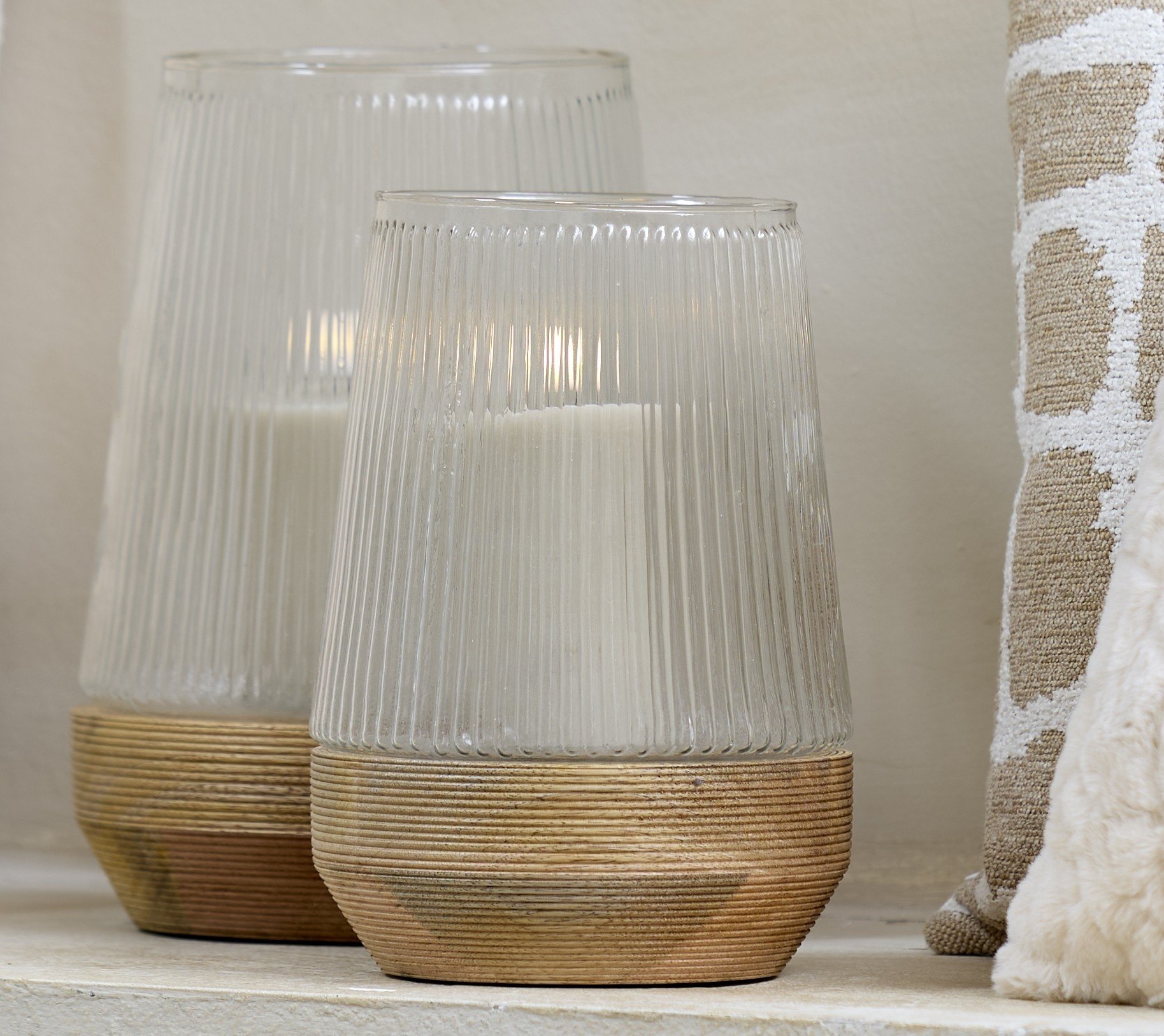 Windlicht Ø18X26 Cm MINAS glas Rib helder+hout Natural