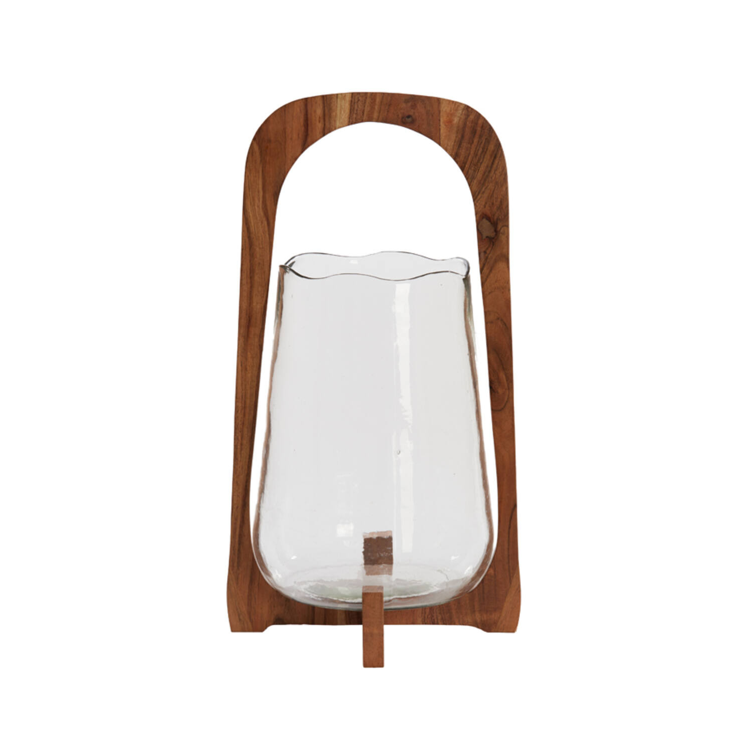Met zijn elegante combinatie van helder glas en een frame van natuurlijk hout brengt dit windlicht rust, eenvoud en karakter in elke ruimte.